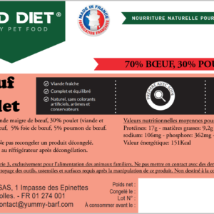 Seul bémol est la livraison chronofresh (délai et jour de livraison jamais respectés, mais Yummy barf n'y est pour rien...).