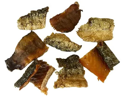 Nos morceaux de peau de saumon avec chair ne sont pas de simples friandises : ce sont des bouchées authentiques, riches en goût et en bienfaits essentiels.